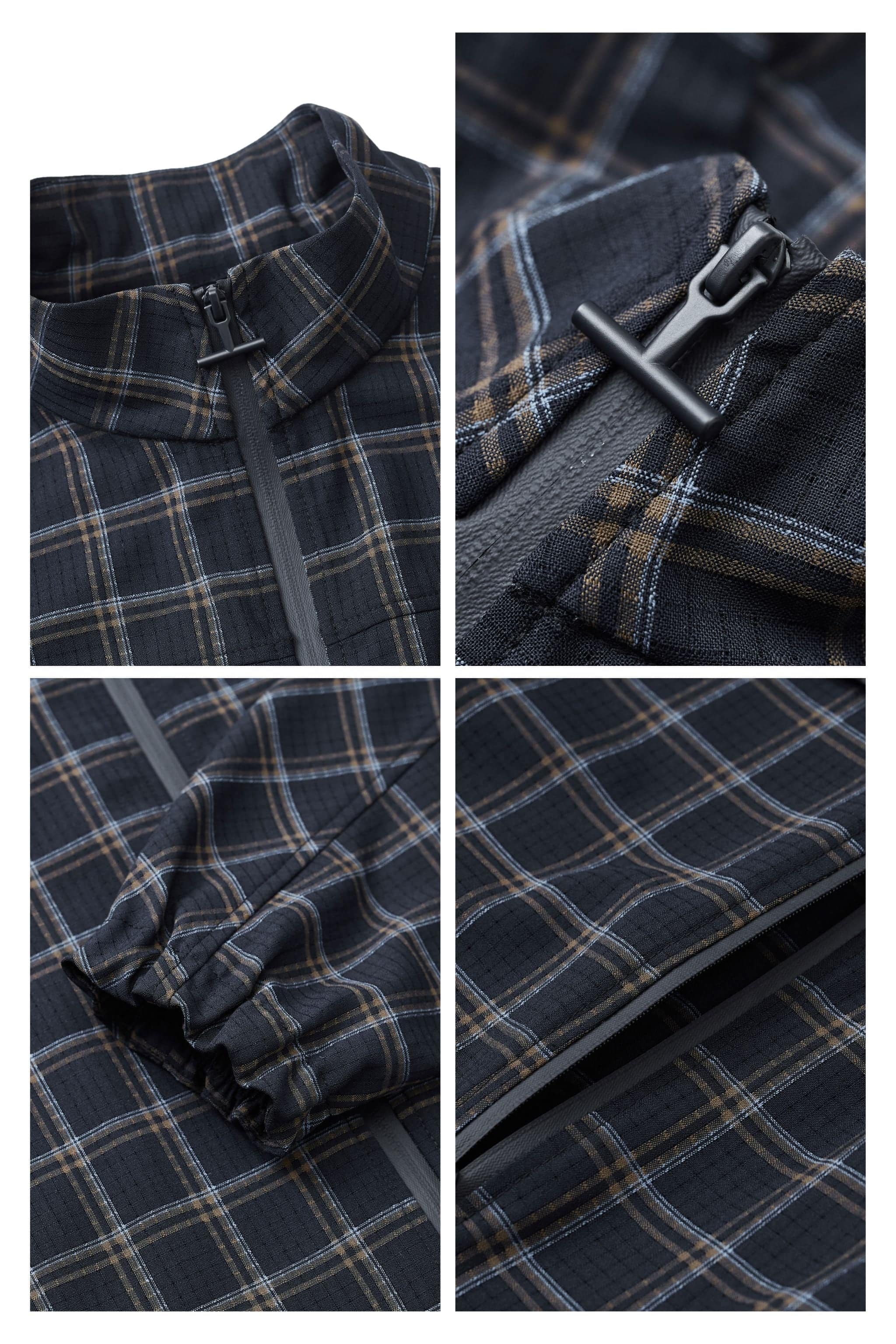 Dual-Texture Jacquard Design: Micro openwork texture paired with a vintage-inspired large-scale check adds depth and visual sophistication.