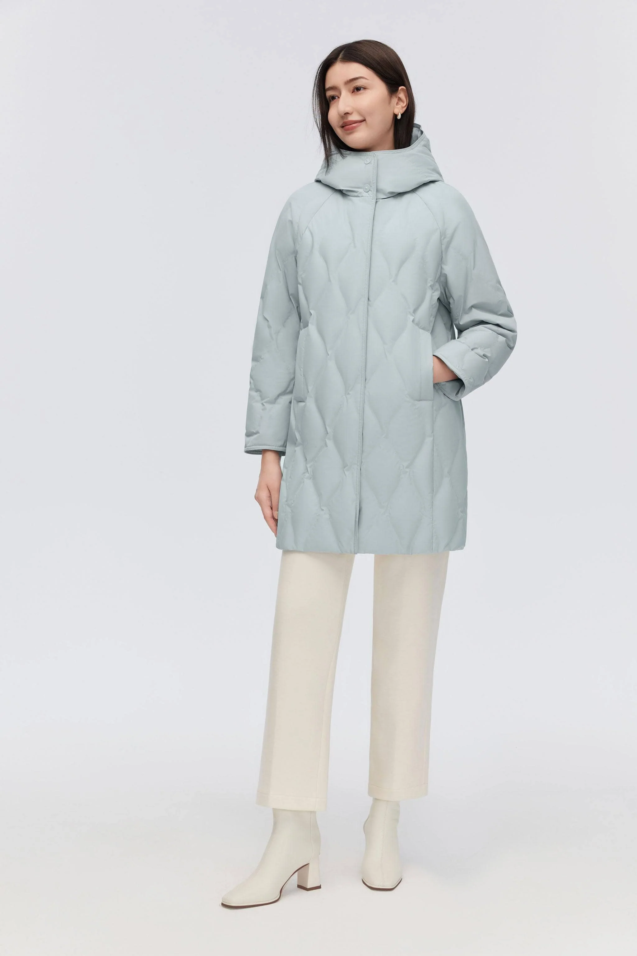 Experience timeless sophistication with our Women's Classic Business Thigh-Length Goose Down Coat, featuring ultra-fine yarns, 700+ fill goose down, and a sleek H-shape silhouette with refined custom buttons—perfect for business or casual occasions.